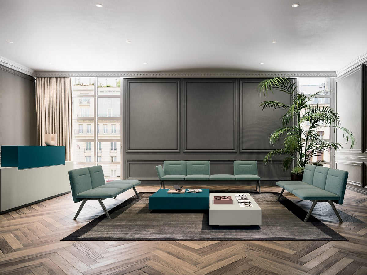 Armony es un sistema modular de sofás viga y mesitas, diseñado para esperar agradablemente en espacios de negocios y hostelería.