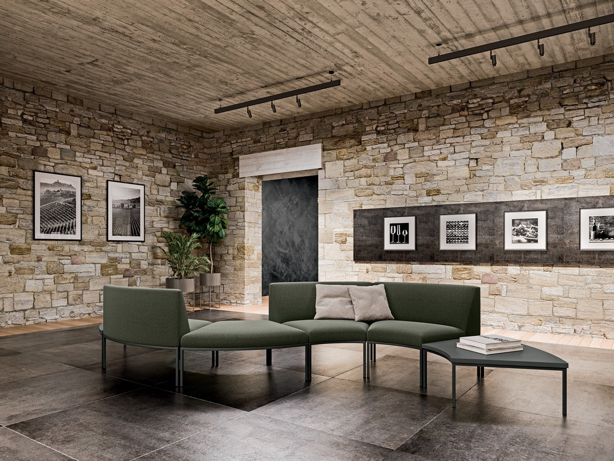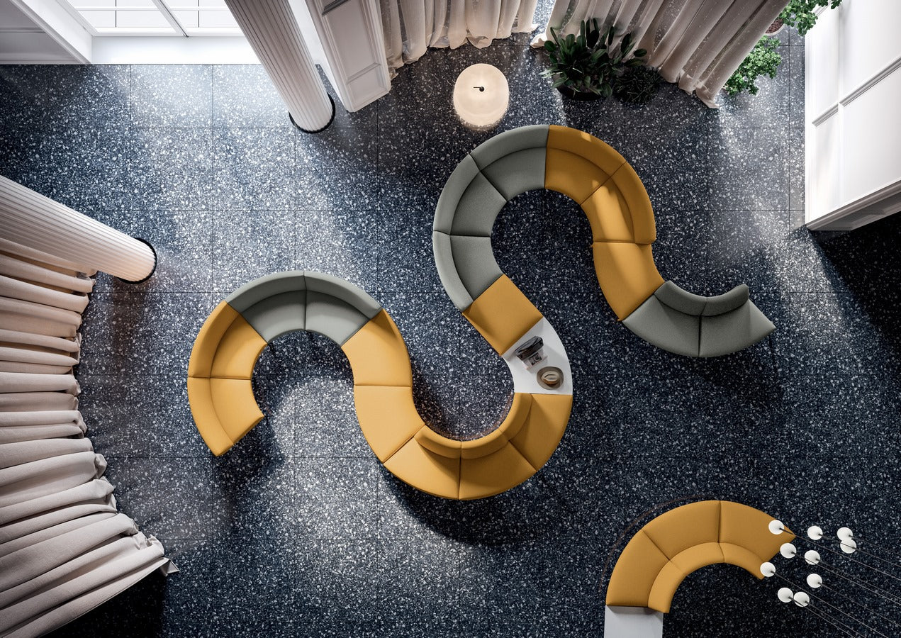 Las líneas Astro y Astro Twist están compuestas por sillones que se pueden personalizar y combinar entre sí mediante un sistema de acoplamiento, para amueblar entornos ad hoc dedicados a la hostelería, por ejemplo, salas de espera, vestíbulos de hoteles, áreas lounge en estaciones, aeropuertos o coworking. espacios.