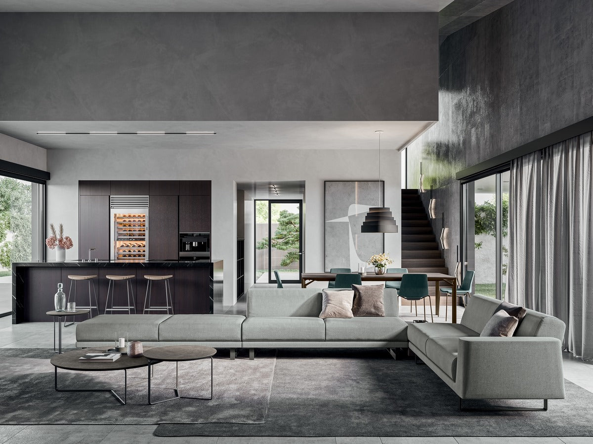 Diseñada por Dorigo Design, esta línea se destaca por el estilo decidido y libre y el refinamiento de los materiales, que permiten diseñar muebles únicos eligiendo entre muchos colores y muchos acabados.