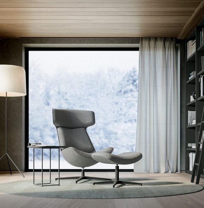 Cleopas está disponible en versión baja y alta con reposacabeza, para ofrecer un asiento más envolvente que sostiene también la parte cervical. El tapizado está estudiado para ser elástico e indeformable: la sensación que regala es la de acomodarse en una nube, ofreciendo un confort superior en casa, en un hotel y en otros espacios de relax.