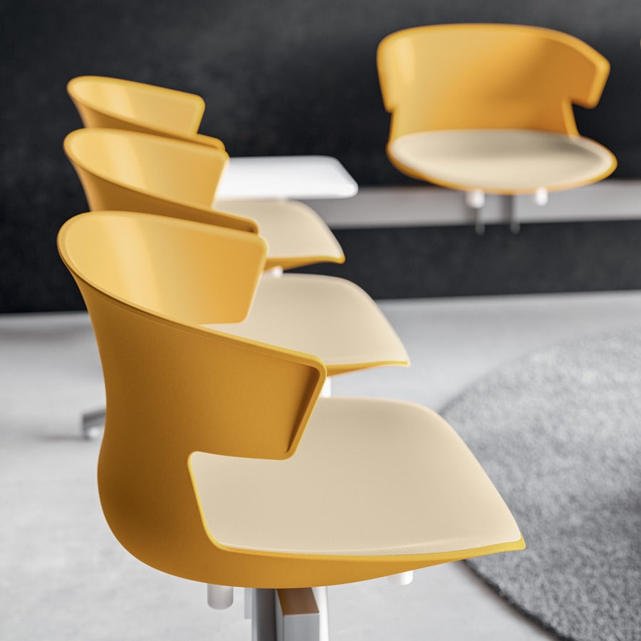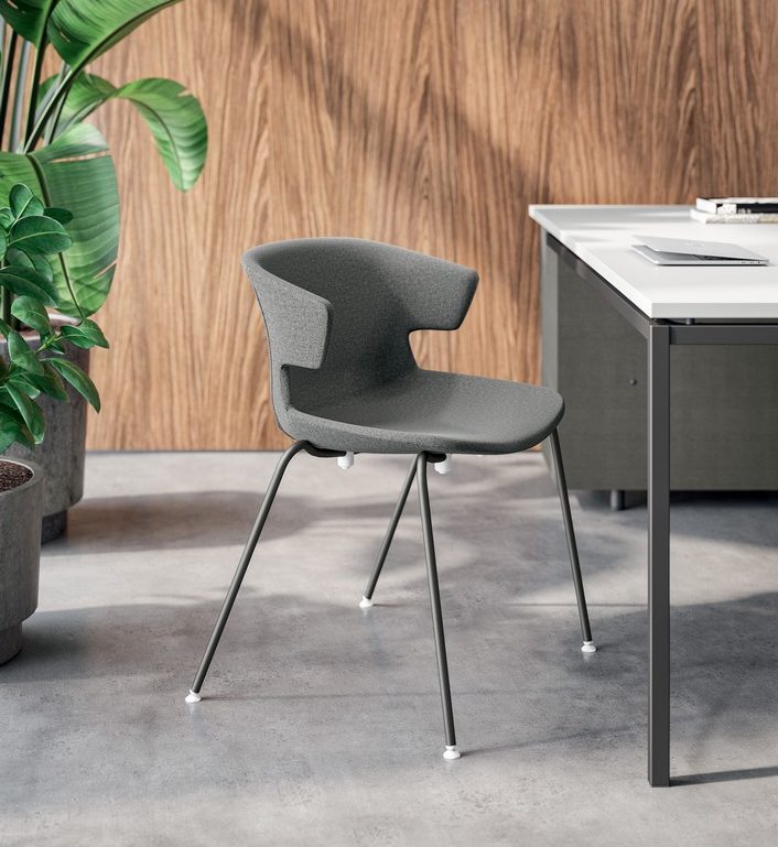 Cove es una línea de sillas pensada para contextos contract y profesionales y pensada para puestos de trabajo, entornos híbridos, espacios de relax compartidos, zonas de espera y salas de reuniones.