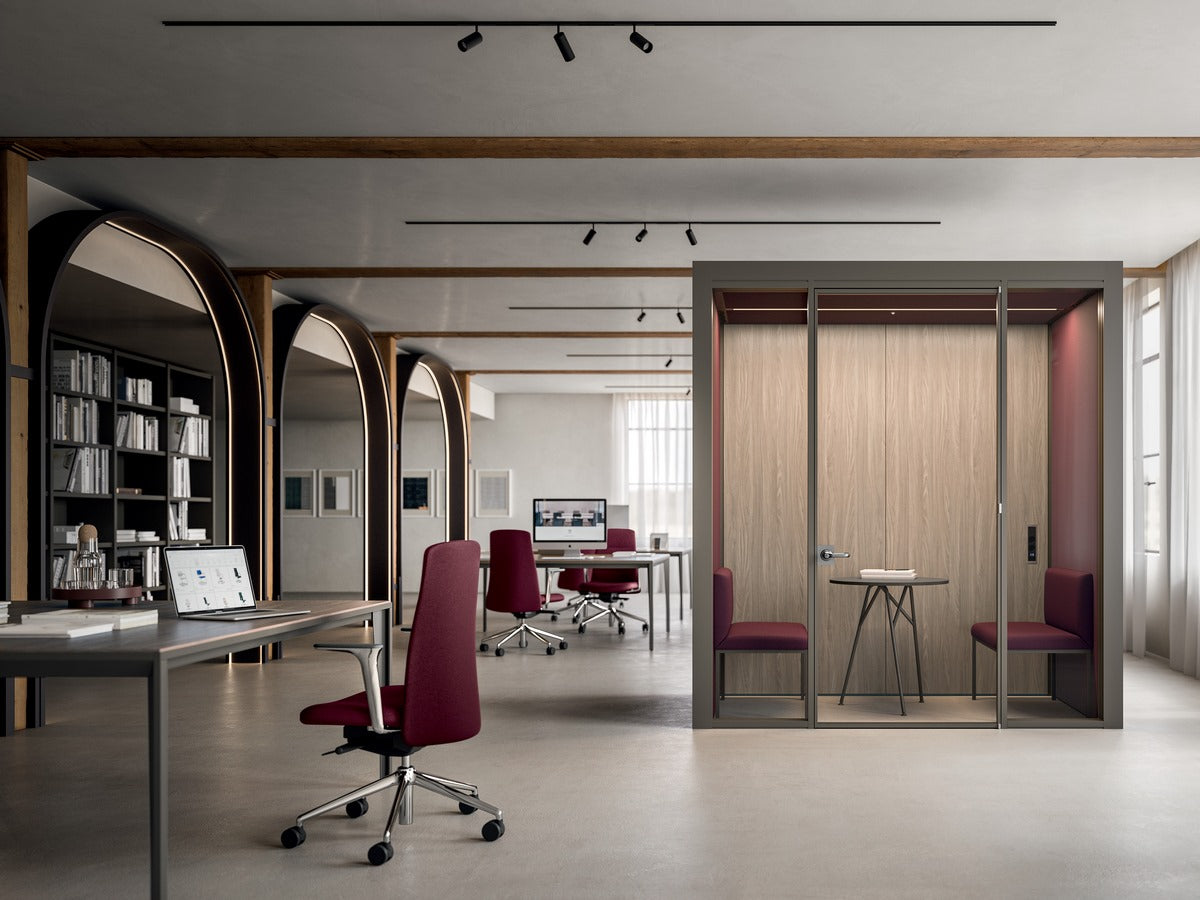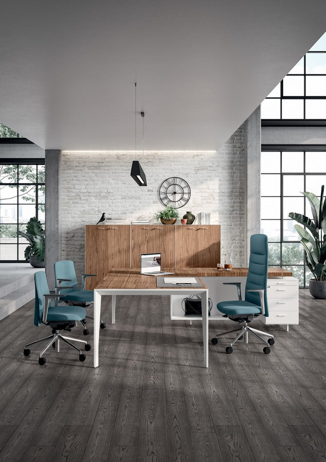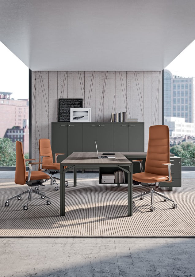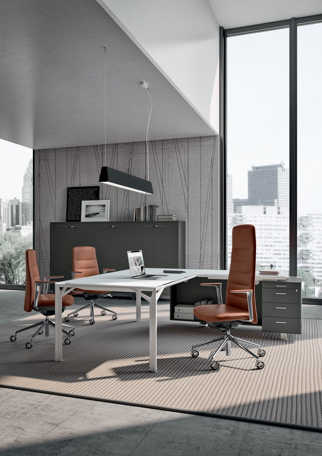 Diade está disponible en la versión alta, con o sin reposacabezas, y en la versión baja, aportando elegancia y personalidad a las salas de reuniones.