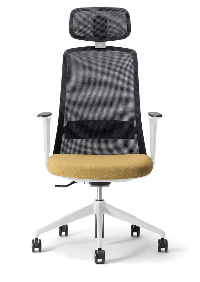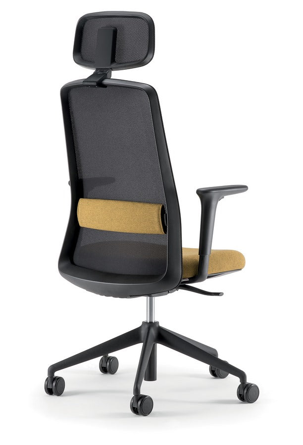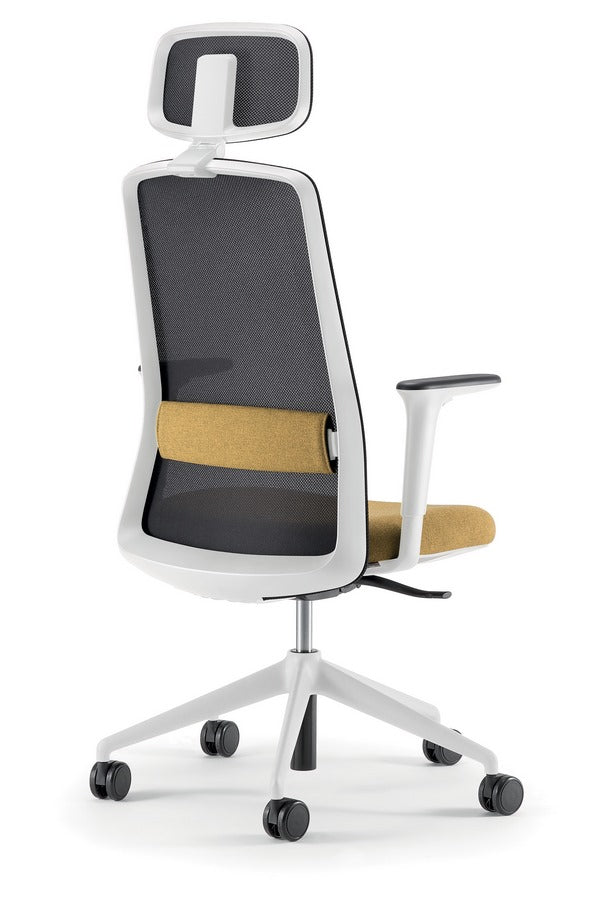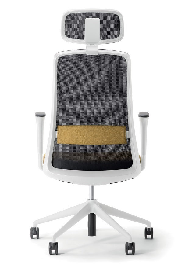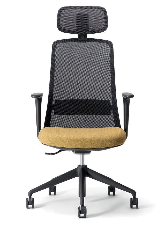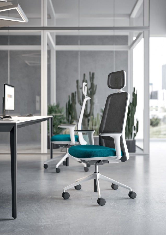 Diade Rock está disponible en dos versiones, alta con o sin reposacabezas, y se puede personalizar con características según las necesidades. La funda del asiento y del respaldo lumbar está disponible en varias opciones de tejido y color; el respaldo de malla gris o negra enriquece el asiento con un ambiente rockero.