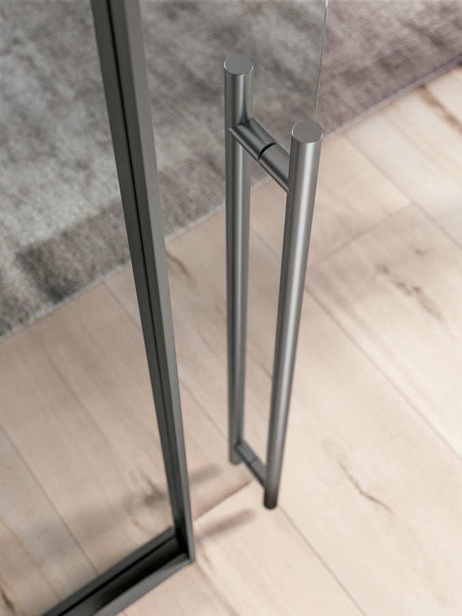 M1 permite crear ambientes independientes, en diálogo con el exterior gracias a los vidrios, y equipado con entradas con puerta abatible o deslizable, con elegantes manillas de aluminio con cerradura.