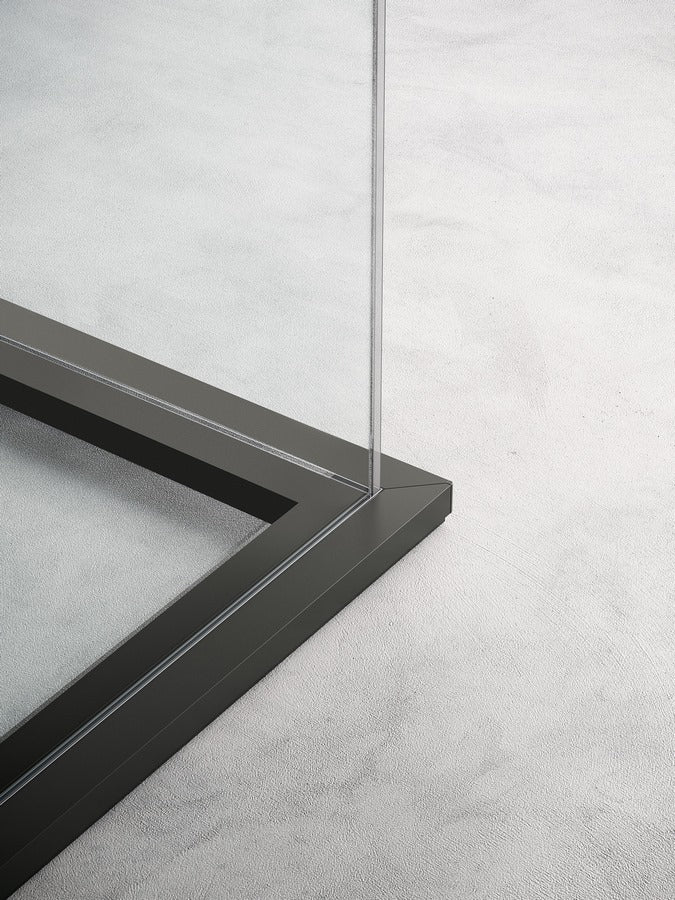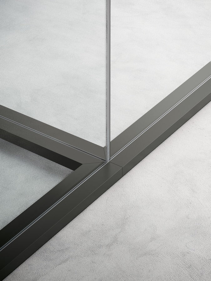Los empalmes lineales y angulares de M1 se apoyan al suelo en perfecta estabilidad, asegurando solidez a la estructura y garantizando una estética estilizada, también gracias a los contramarcos finos.