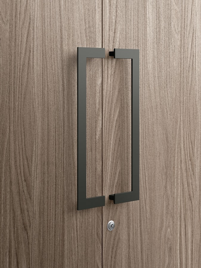 Las cerraduras de cremona de las paredes garantizan un encuentro perfecto y adherente entre las puertas, además de una apertura y un cierre soft.