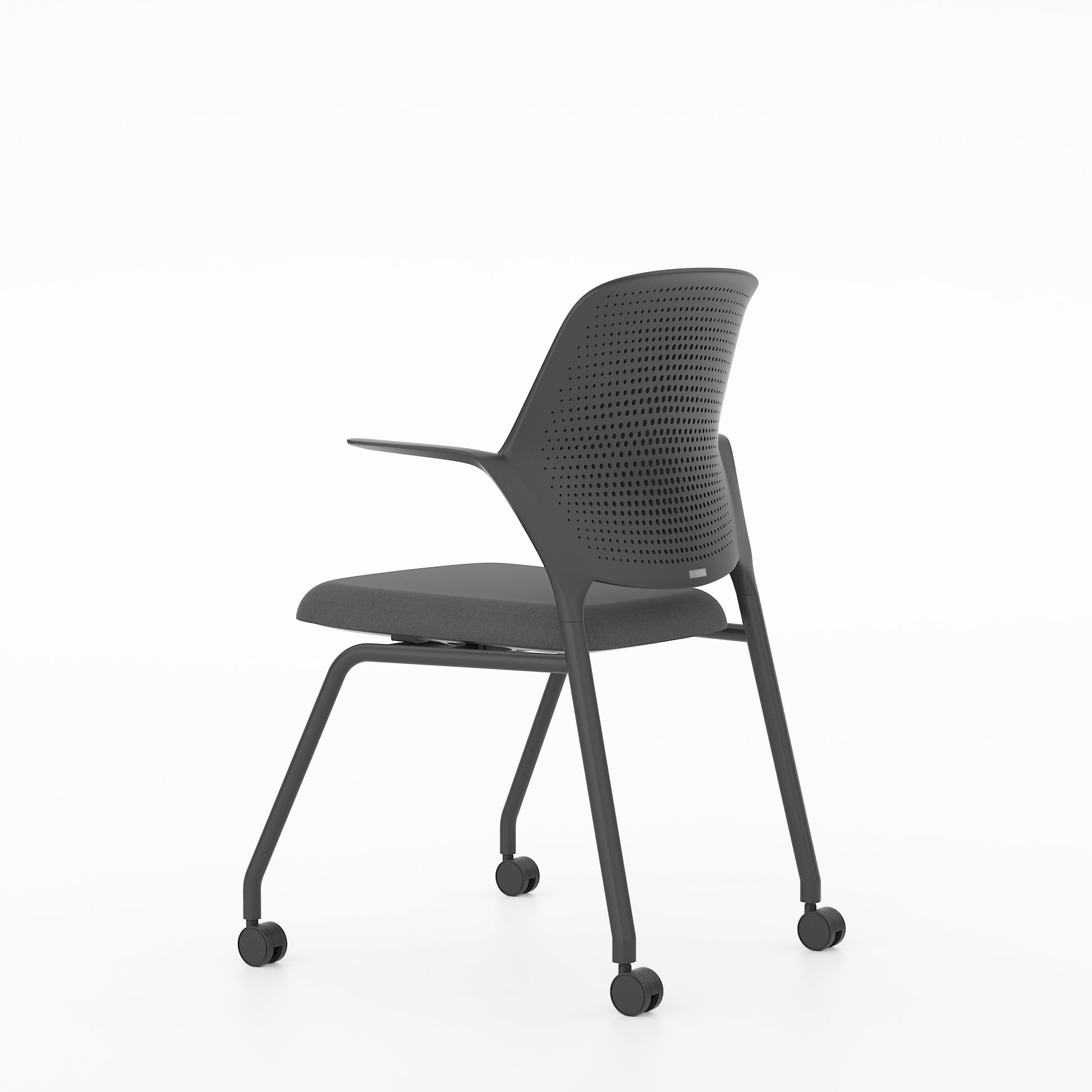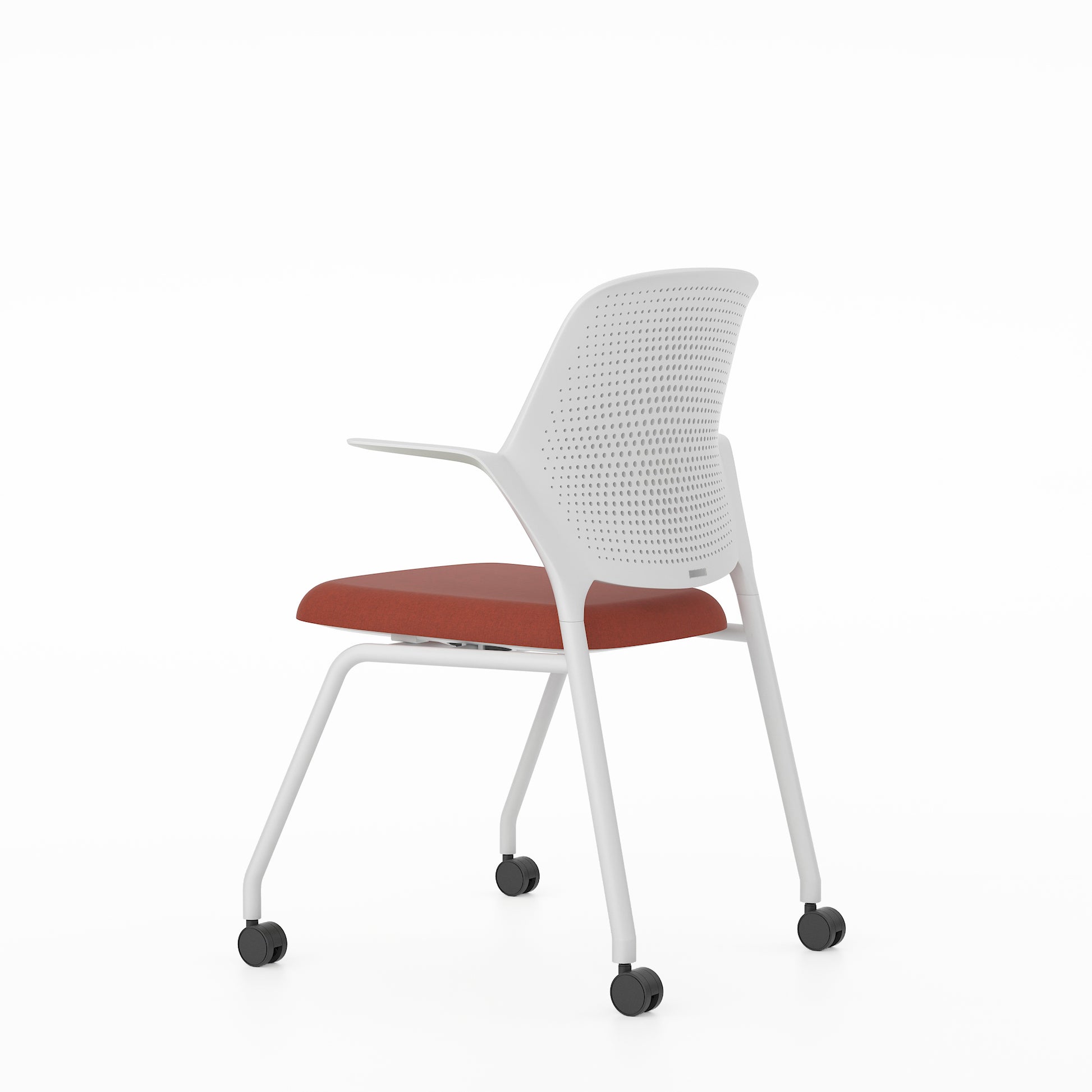 La silla ofrece comodidad y durabilidad.Respaldo perforado en blanco o negro para mayor transpirabilidad y soporte durante largas jornadas.El asiento de espuma moldeada mantiene la forma y ofrece comodidad para un trabajo concentrado.