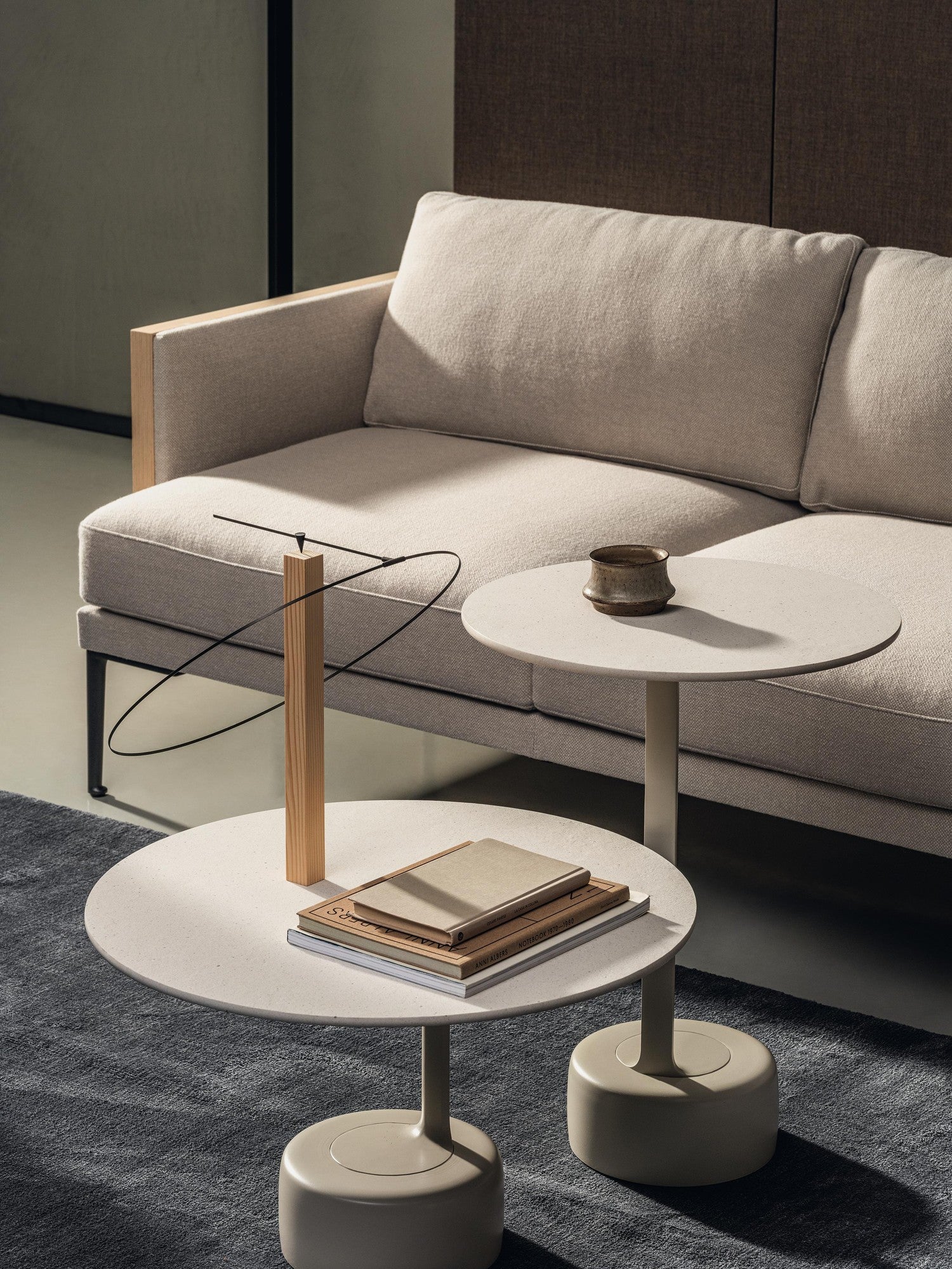 Ideal para aplicaciones del sector de contratos y espacios residenciales, la sofisticada colección de sofás y otomanas Steeve incluye versiones independientes de una, dos y tres plazas, y módulos que pueden combinarse. La modularidad de la colección se expresa a través de la variedad de composiciones lineales y de esquina que se pueden crear. El sistema incluye módulos centrales, finales y de esquina para adaptarse a una amplia gama de necesidades. Cada versión está disponible con patas estándar o con una elegante pata en forma de «T», ambas de aluminio pintado. Sumamente versátil, Steeve se caracteriza por una estructura exterior disponible en madera visible, o completamente tapizada en tela, piel o tela recubierta. El tapizado de la estructura interna y de los suaves cojines del asiento y del respaldo puede configurarse en versión coordinada o bicolor. La colección se completa con cojines accesorios, disponibles en dos formatos diferentes.